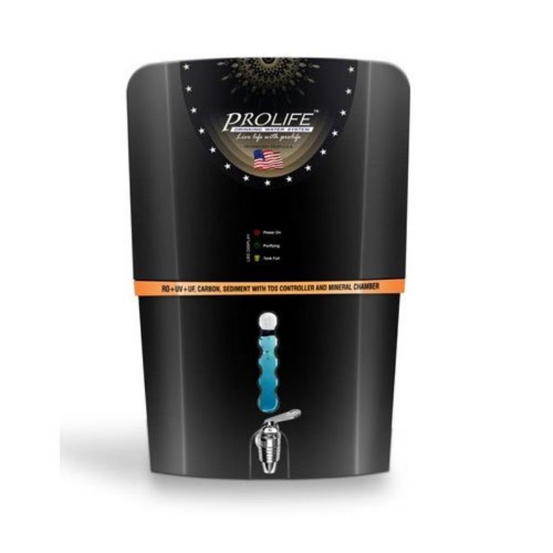 The Prolife RO (Reverse Osmosis) Water Purifier is a cutting-edge solution for ensuring safe and clean drinking water. Designed with advanced purification technology, it effectively removes impurities, contaminants, and harmful substances such as bacteria, viruses, heavy metals, and dissolved salts from water, delivering pure and healthy hydration. Equipped with multiple stages of filtration, including sediment filters, carbon filters, and RO membranes, the Prolife RO system ensures thorough purification. Some models also feature UV (Ultra Violet) and UF (Ultra Filtration) technology for added protection against microorganisms. The purifier retains essential minerals, providing water that is not only safe but also rich in taste and quality. With user-friendly features like touch controls, automatic tank filling, and filter change indicators, the Prolife RO Water Purifier offers convenience and efficiency. Its sleek and modern design makes it a perfect fit for homes, offices, and other spaces. Durable, efficient, and reliable, the Prolife RO Water Purifier is an excellent investment in health, ensuring you and your family have access to clean, refreshing water every day.
